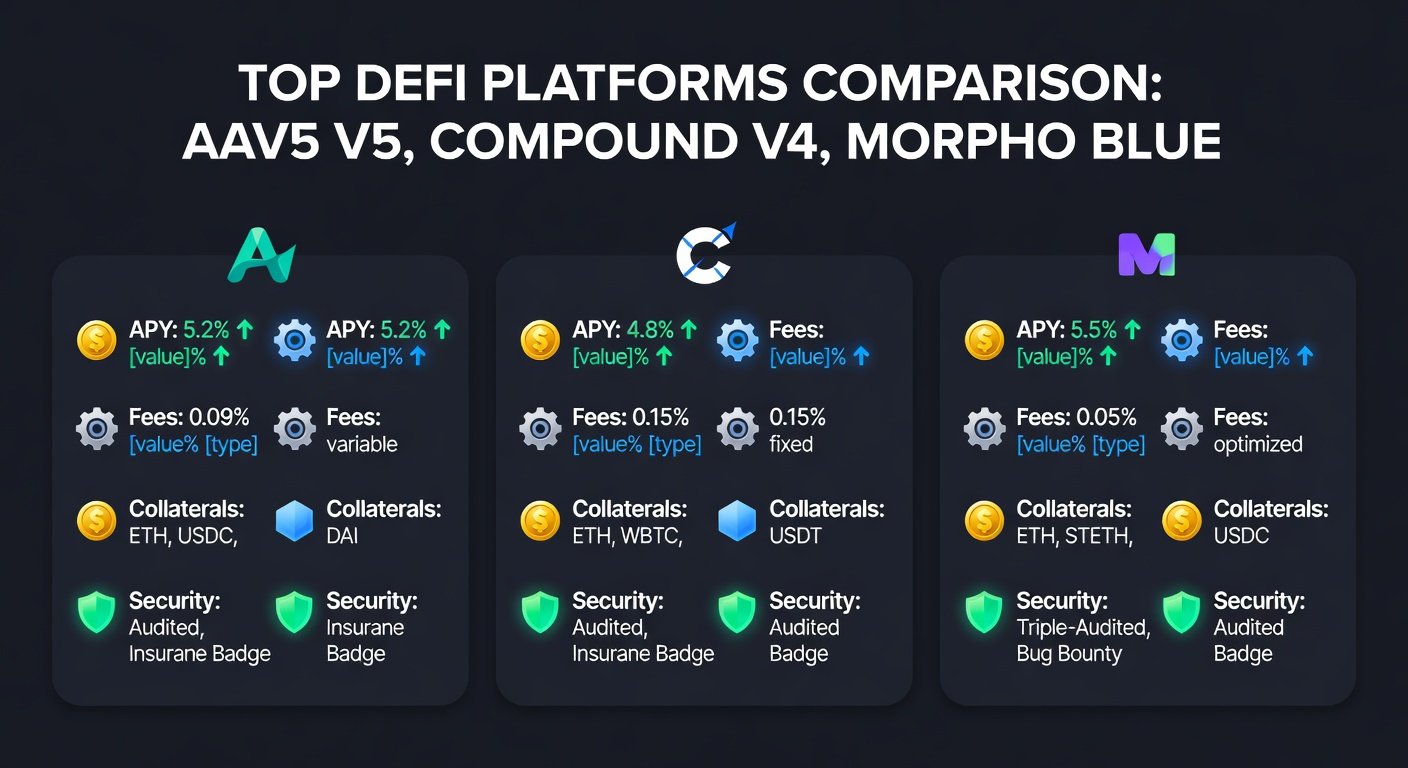 Aave V5 shines with risk-isolated markets, while Compound V4 offers predictable rates via its algorithmic model. Emerging like Morpho Blue uses peer-to-peer matching for higher yields. Check live stats on DeFiLlama.