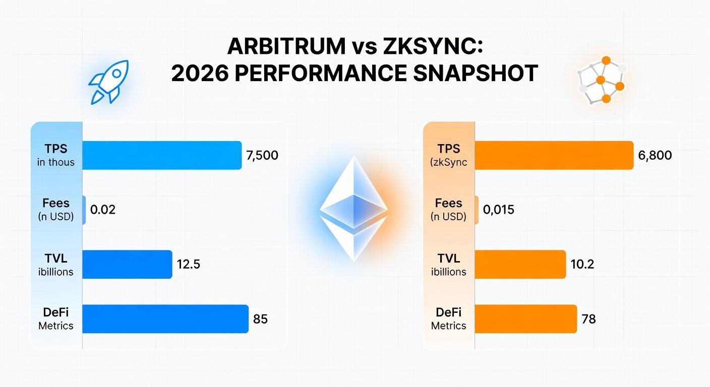 TVL tells the story. Arbitrum boasts $25B+ TVL in 2026, dominating with Aave, GMX, and Uniswap V4 integrations. zkSync trails at $15B but surges in privacy-focused DeFi like zkLend and SyncSwap.